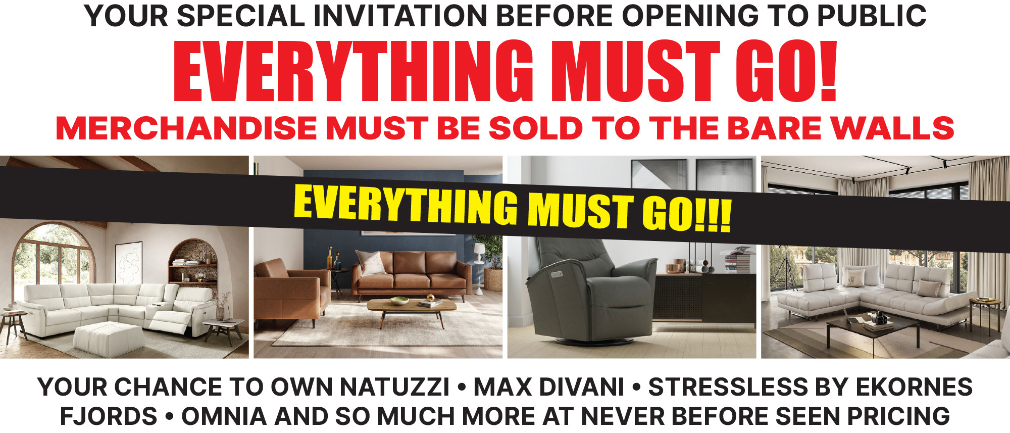 To help prepare for this tremendous venture, EVERYTHING MUST GO! Millions of $$’s worth of inventory must be LIQUIDATED AT SACRIFICED PRICING!