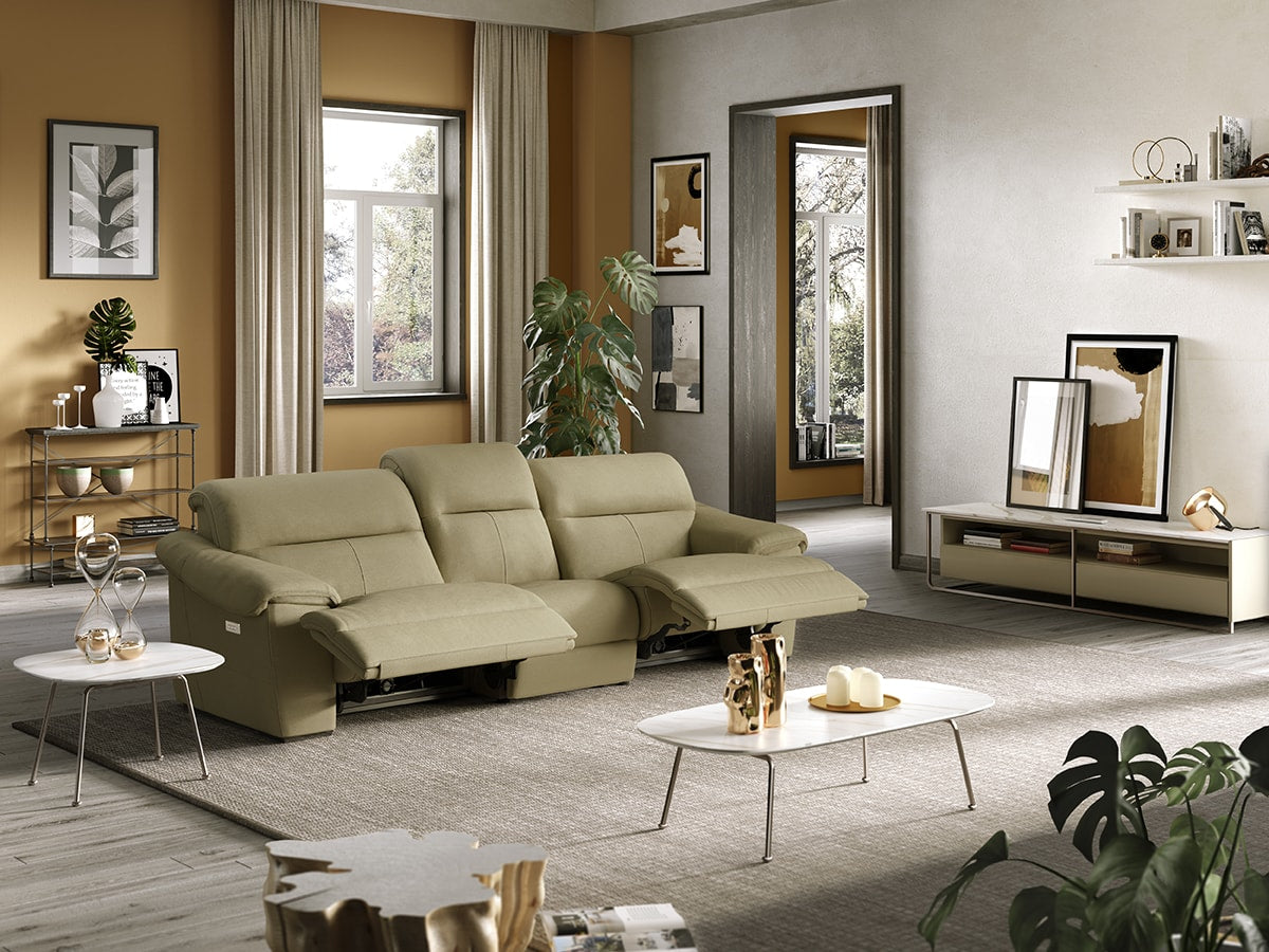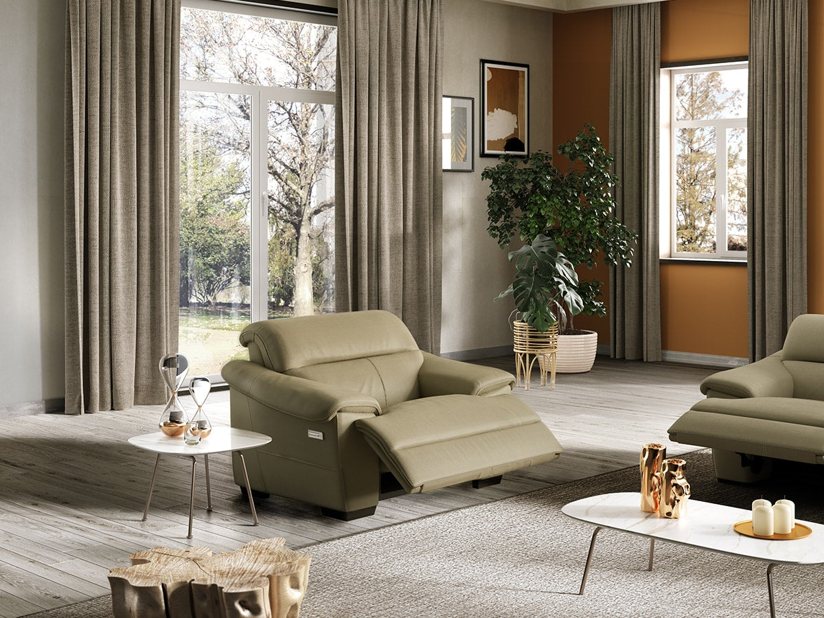 Thanks to the optional Cubicomfort™ Triple-Motion technology each seat has three independent, electrically-operated motion mechanisms, allowing the person in each seat to adjust the position of the seat cushion, backrest, footrest and headrest according to their own preferences. It’s so easy to go into full relax mode, thanks to a smart switch on the side panel which also comes with a USB port.