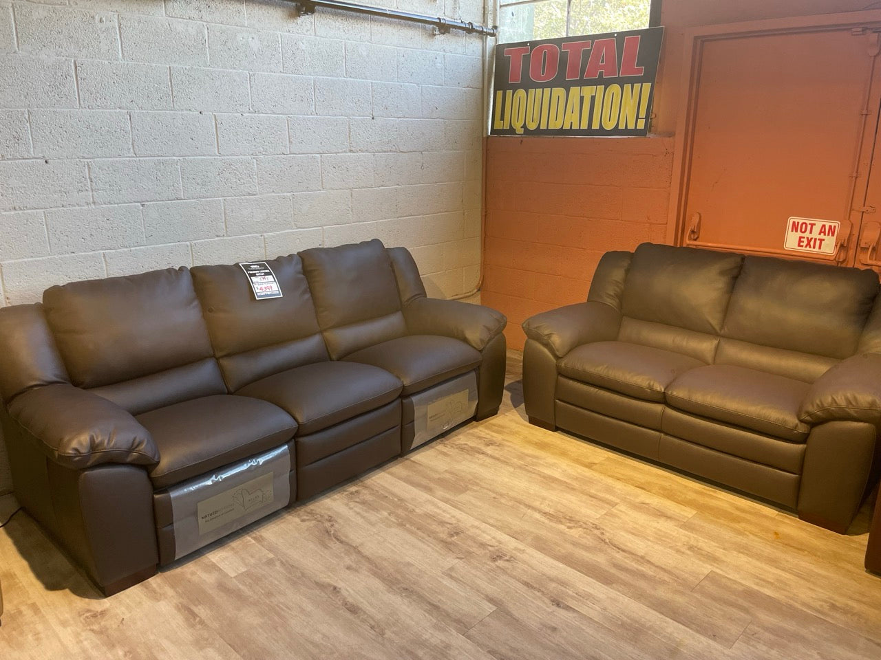Natuzzi A450 Prudenza Chocolate Power Sofa & Loveseat